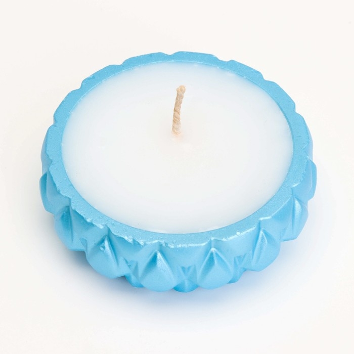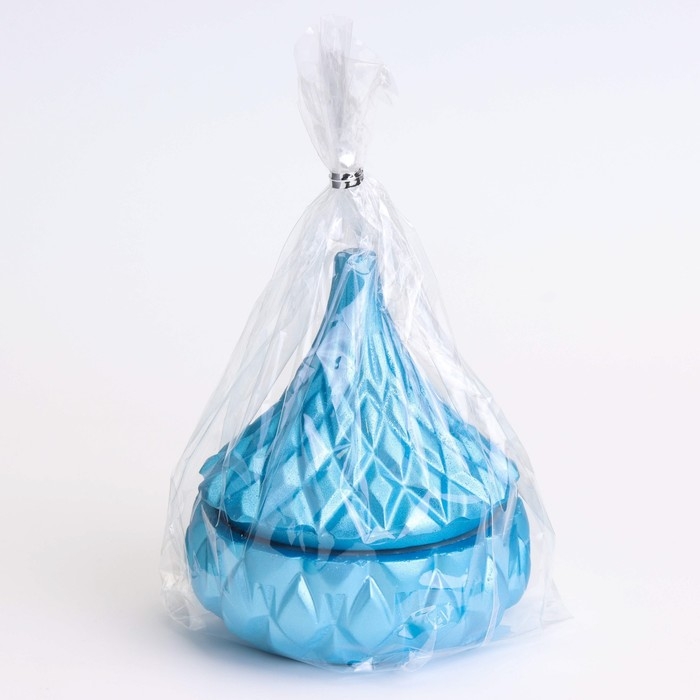 Свеча «Купол» в подсвечнике с ромбовидными гранями из гипса с крышкой, 8,5х8,5см, голубой