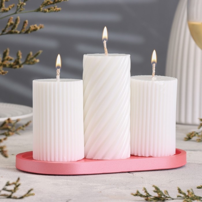 Подсвечник овальный из гипса,17,5х9х1,5см,розовый