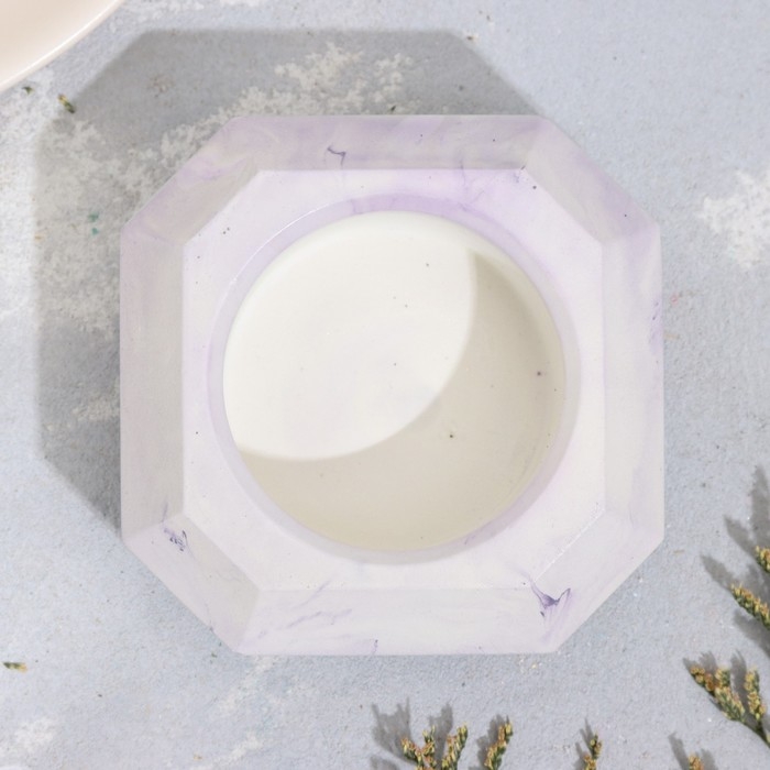 Подсвечник "Квадрат" из гипса со скошенными углами малый,9х3,5см,мрамор с фиолет. полосками