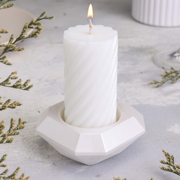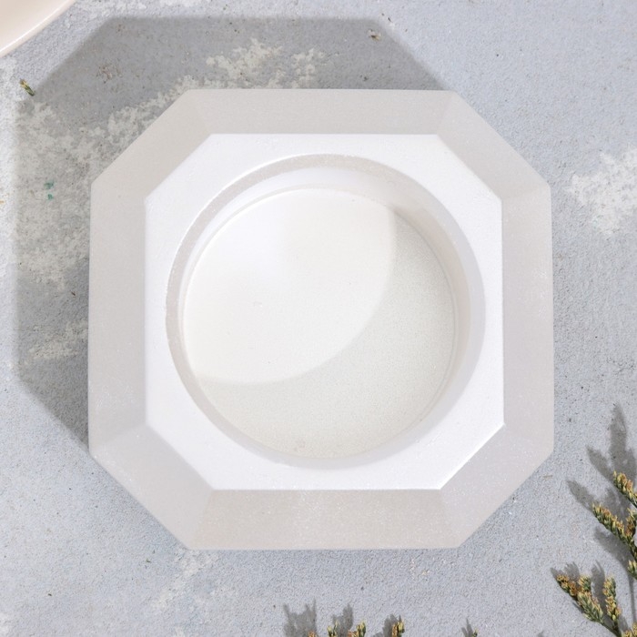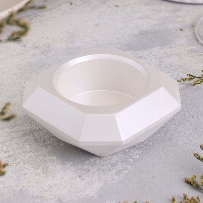Подсвечник "Квадрат" из гипса со скошенными углами малый,9х3,5см,белый перламутр