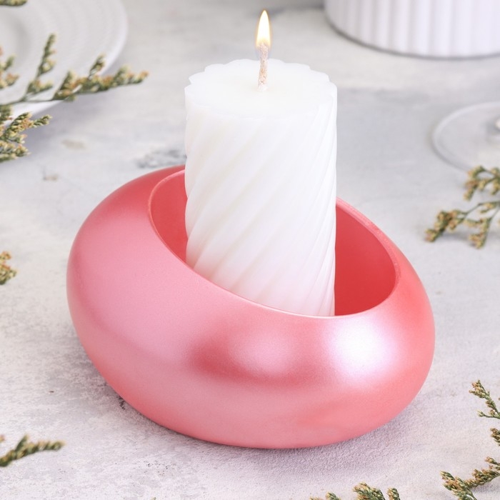 Подсвечник "Капля" из гипса,14,5х10х6,5см,розовый