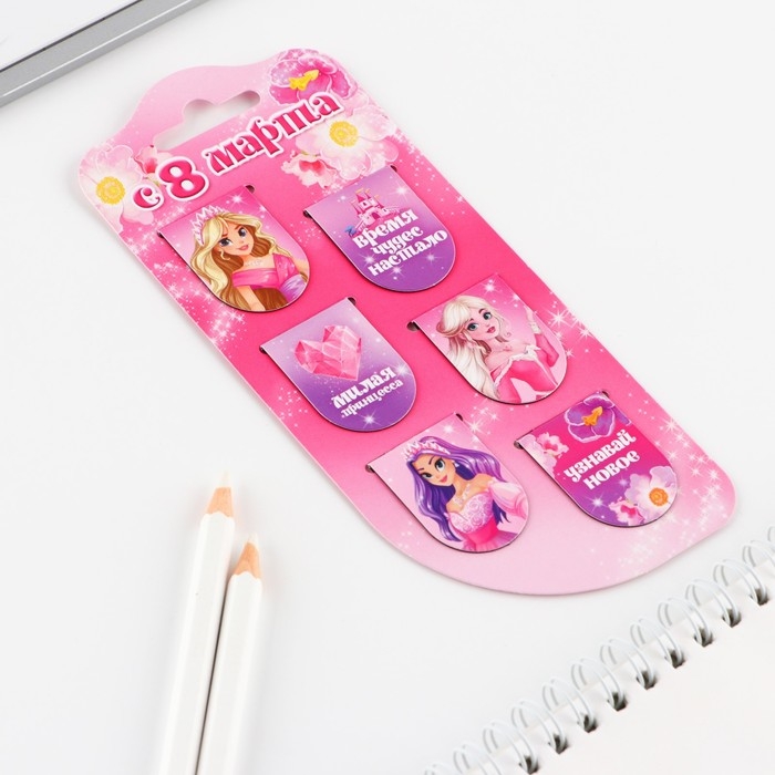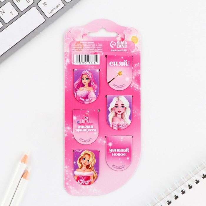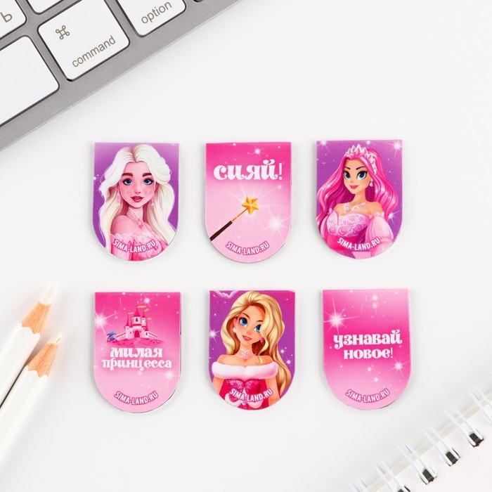 Закладки магнитные, 6 шт «Принцессы»
