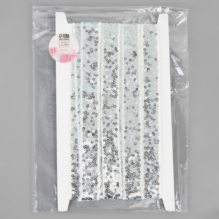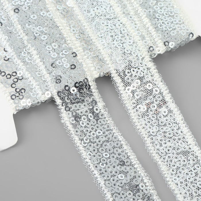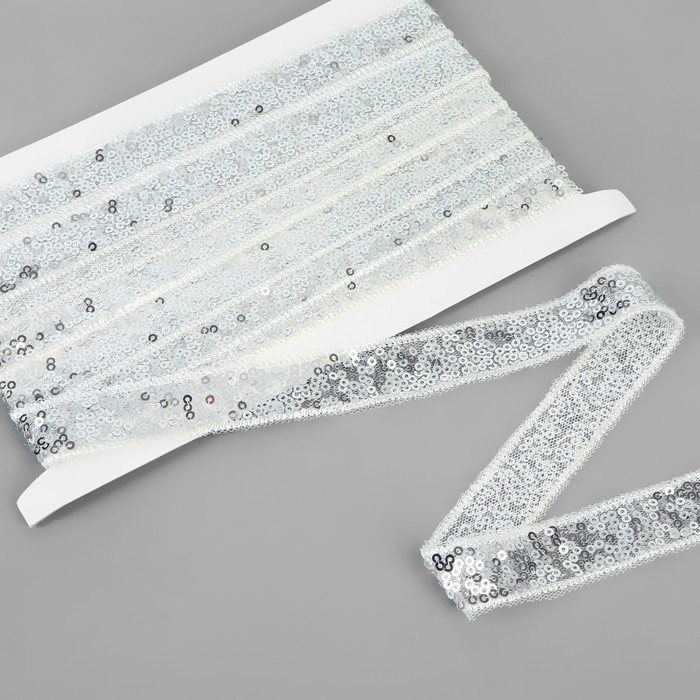 Тесьма декоративная с пайетками, 20 мм, 4,5 ± 0,5 м, цвет серебряный