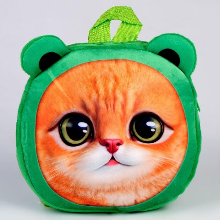 Рюкзак детский для девочки «Кошечка», плюшевый, цвет зеленый