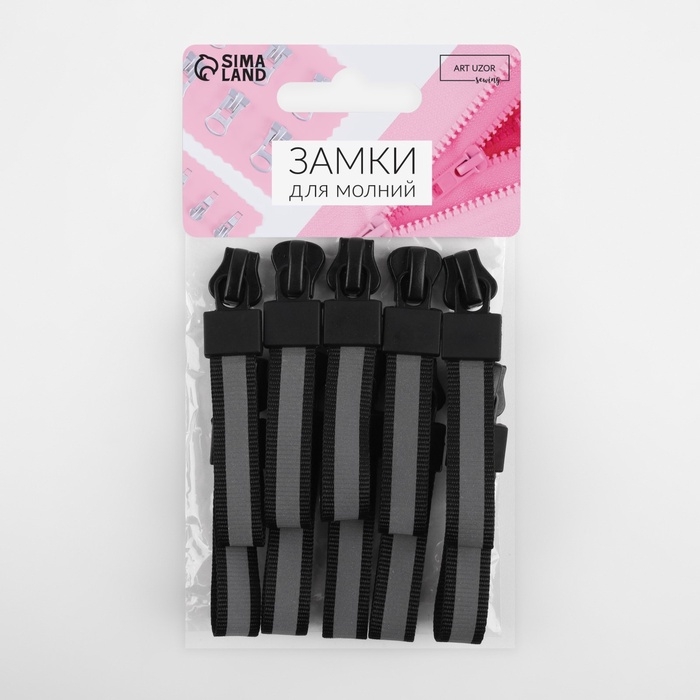 Бегунок автоматический светоотражающий для молнии «Трактор», №5, 10 шт, цвет чёрный