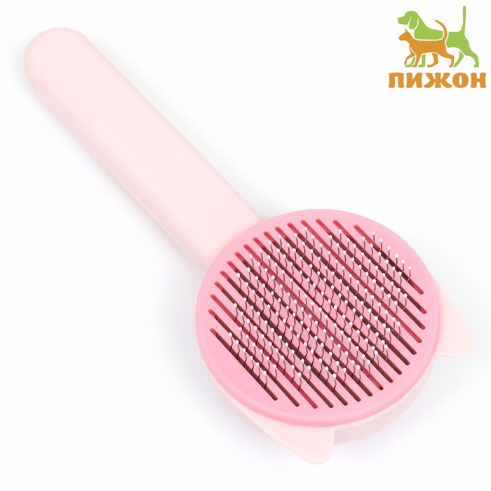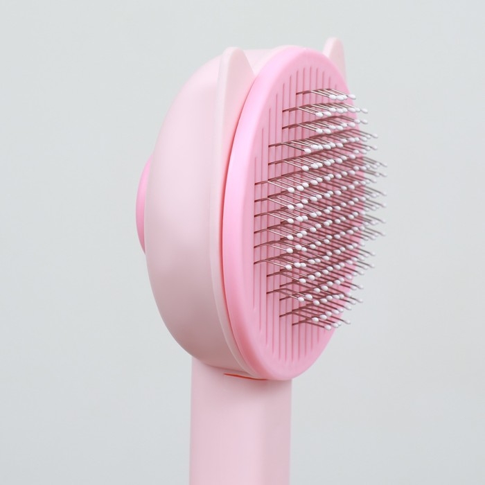Пуходёрка пластиковая "Кошка" с функцией самоочистки, 8,5 х 20 см, розовая