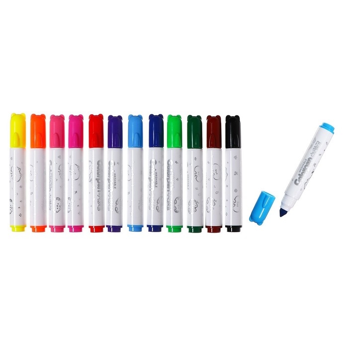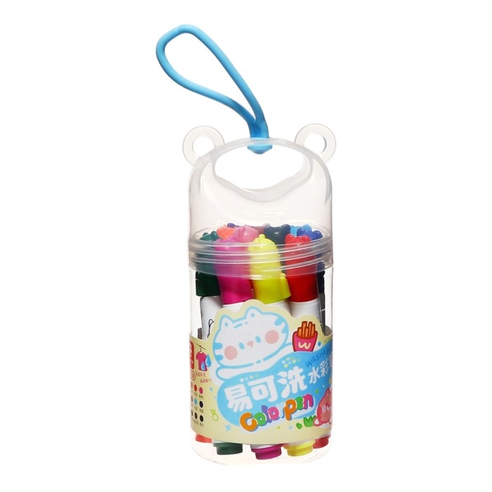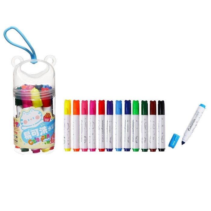 Фломастеры 12 цветов в пластиковом тубусе с ручкой "Мишка"