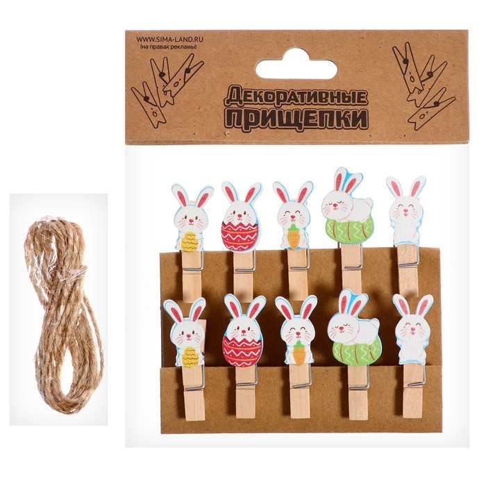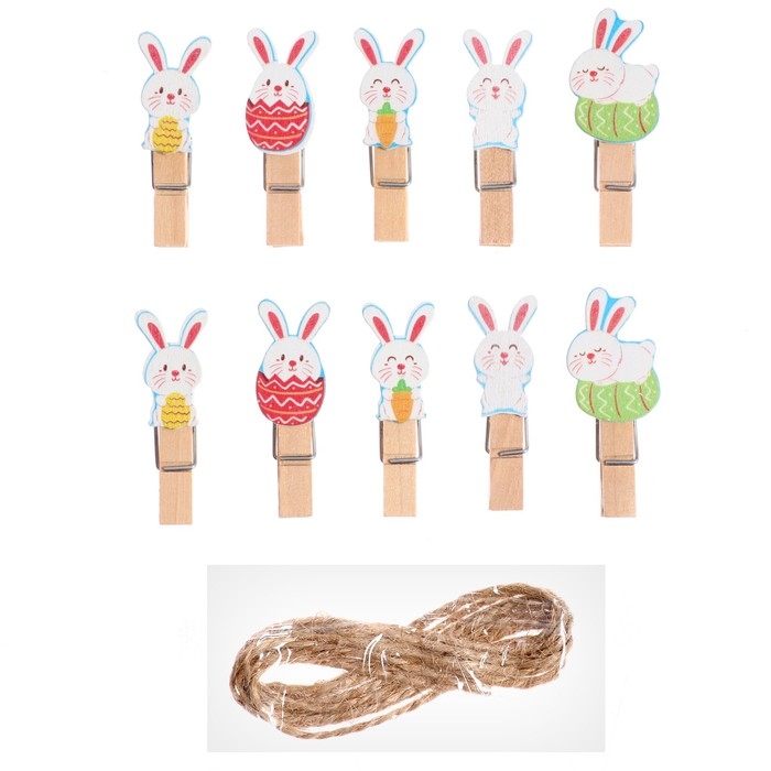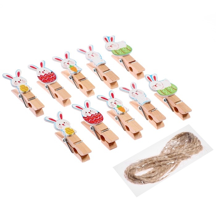 Прищепки декоративные «Зайчики и яички» набор 10 шт., 1.5 × 12 × 14 см