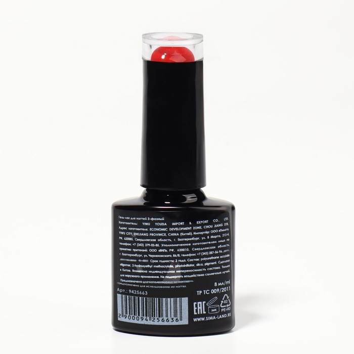 Гель лак для ногтей «RED BOOM», 3-х фазный, 8 мл, LED/UV, цвет (68)