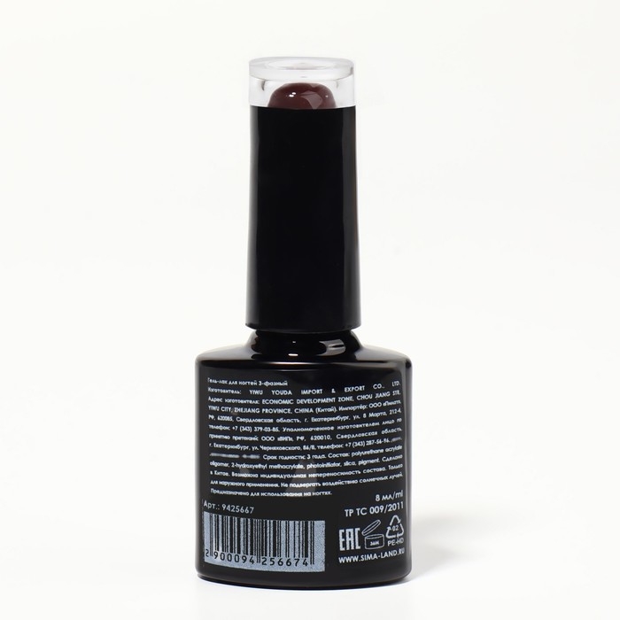 Гель-лак для ногтей трёхфазный LED/UV, 10мл, цвет В2-094 баклажан перламутровый