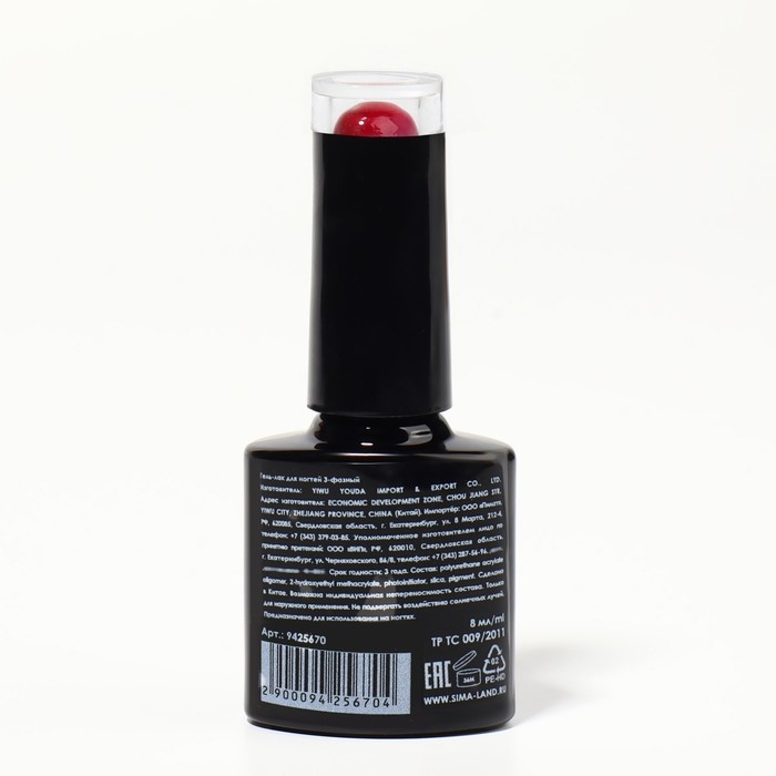 Гель лак для ногтей «RED BOOM», 3-х фазный, 8 мл, LED/UV, цвет (78)