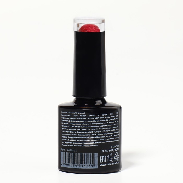 Гель лак для ногтей «RED BOOM», с блёстками, 3-х фазный, 8 мл, LED/UV, цвет (85)