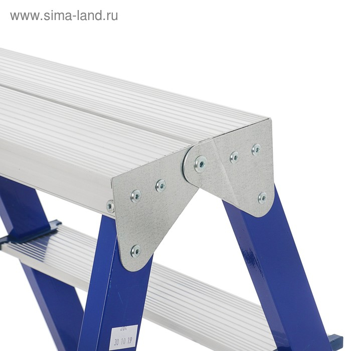 Стремянка выполнена из лёгких, но прочных материалов: каркас — из окрашенной стали, ступени — из алюминия.