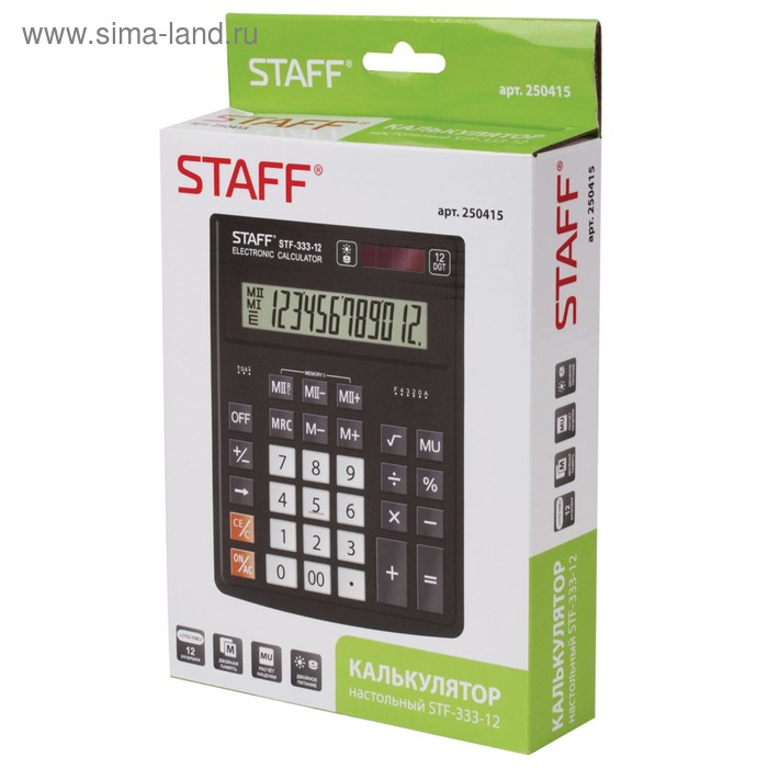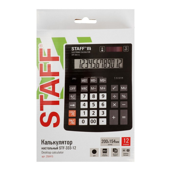 Калькулятор настольный 12 разрядов STAFF PLUS STF-333, двойное питание