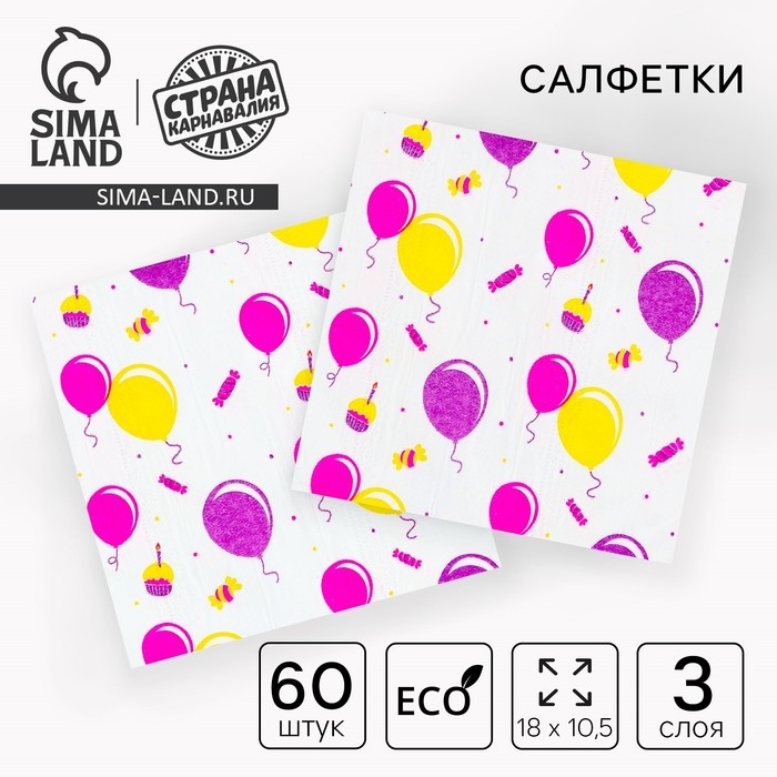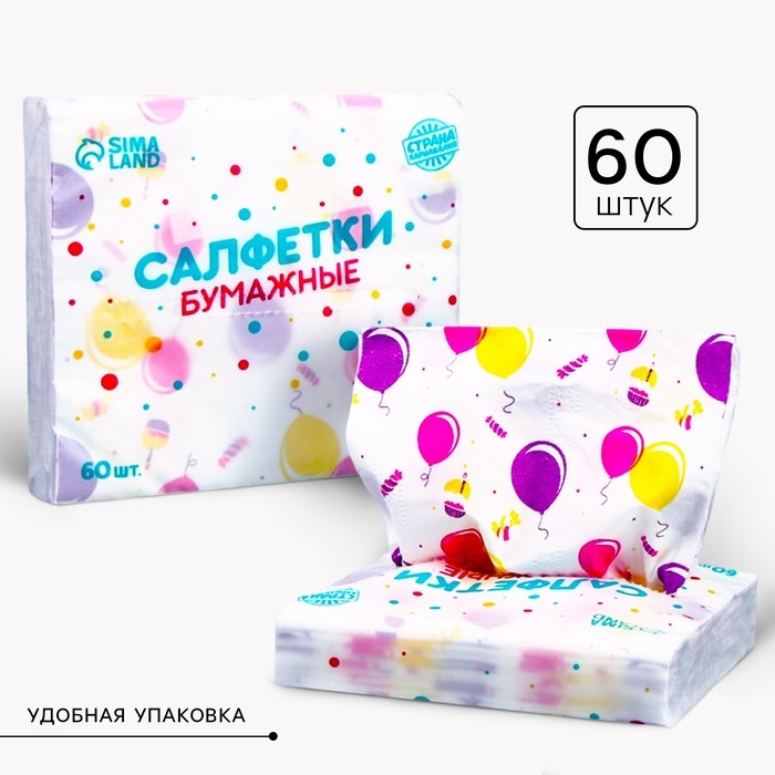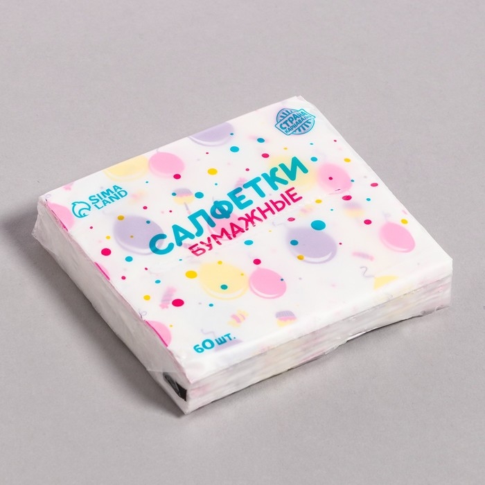 Салфетки бумажные "Шарик", 60 шт в пакете, трёхслойные