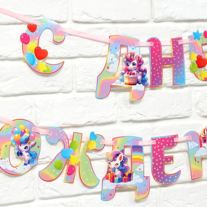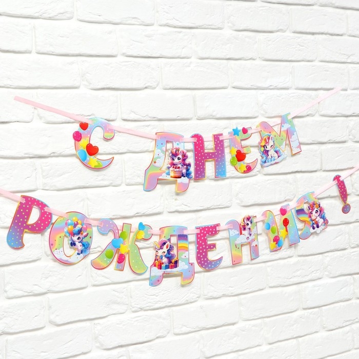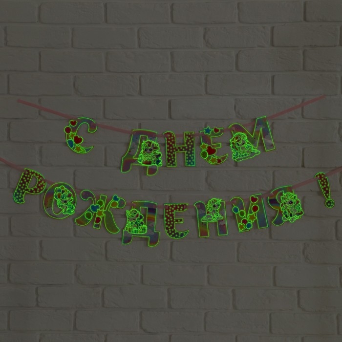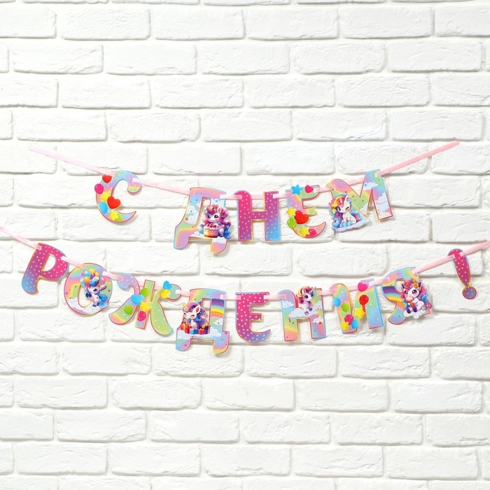 Гирлянда на ленте люминисцентная "С Днем Рождения", единорог, дл. 250 см