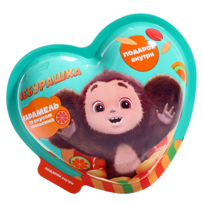 Карамель в пластиковом сердце с подарком «Чебурашка» 15 г.