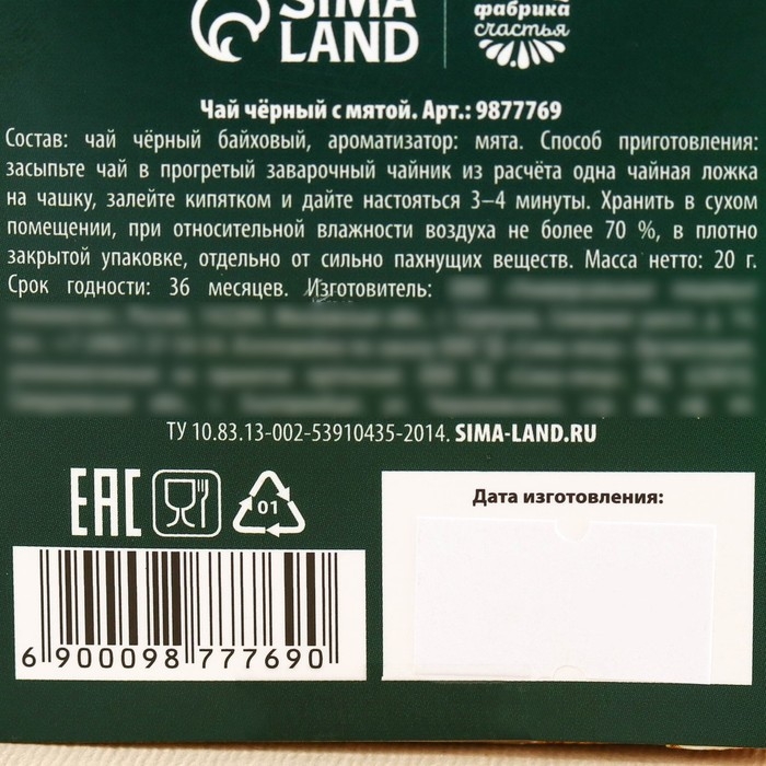Новый год! Чай чёрный «Роскошного года» с предсказанием, вкус: мята, 20 г.