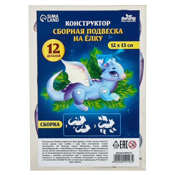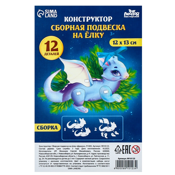 Новогодняя сборная подвеска на ёлку «Новый год! Дракон»