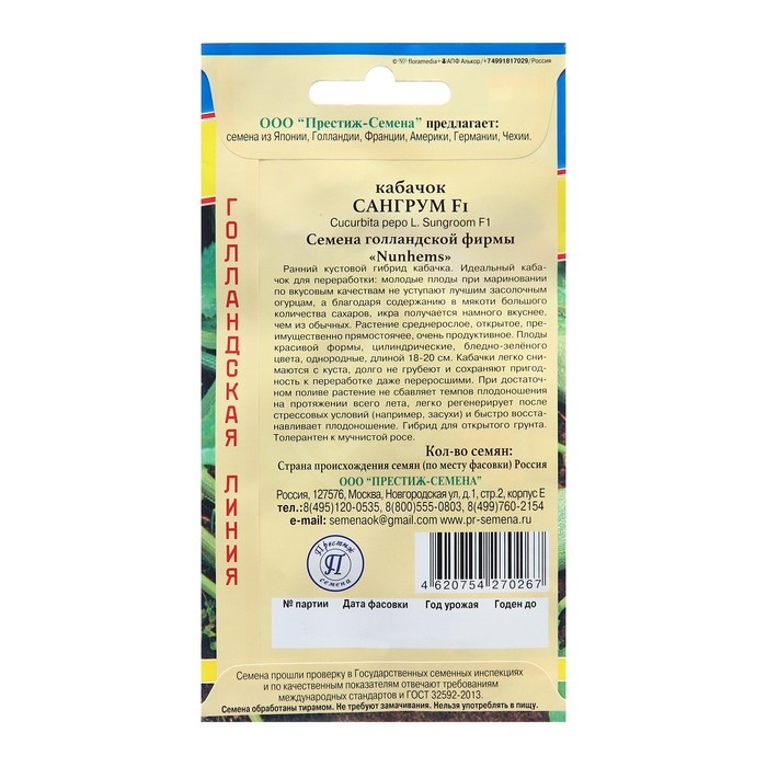 Семена Кабачок "Сангрум F1", ц/п, 5 шт.