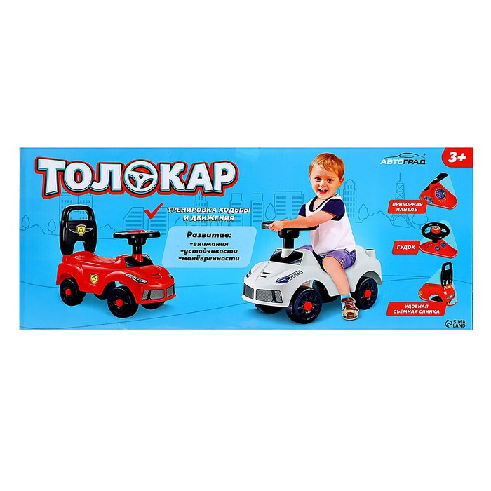Почувствовать себя настоящим участником соревнований на скорость малыш сможет благодаря толокару «Ночной гонщик»! Эта машинка имеет яркий дизайн, который точно привлечёт внимание ребёнка. Съёмные элементы и звуковые эффекты сделают игру ещё реалистичнее и интереснее.