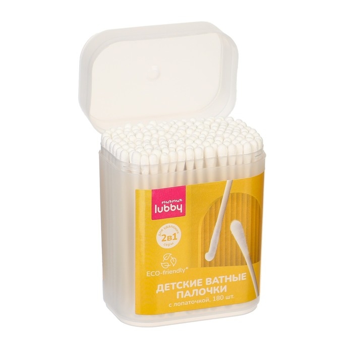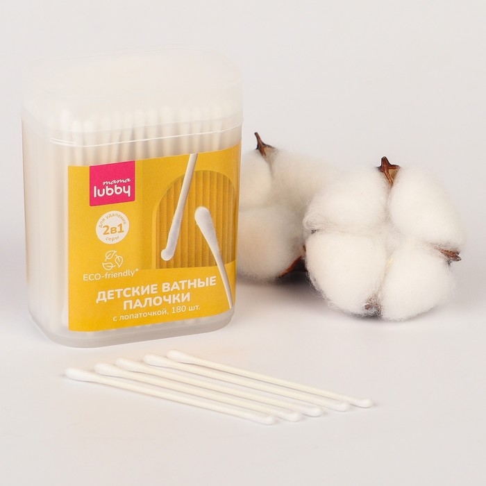 Детские ватные палочки 2в1 mama lubby с лопаточкой, 180 шт.
