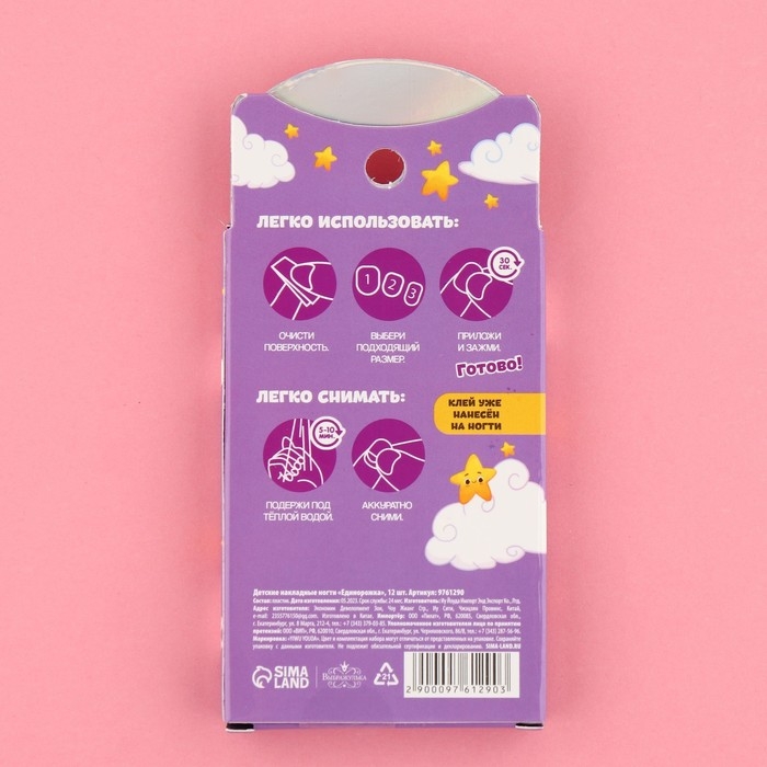 Детские накладные ногти «Единорожка», 12 шт