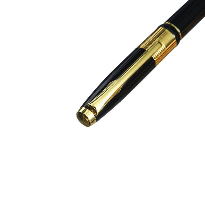 Ручка подарочная, шариковая "Босс" в кожзам футляре, поворотная, чёрная с золотом