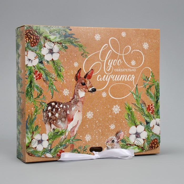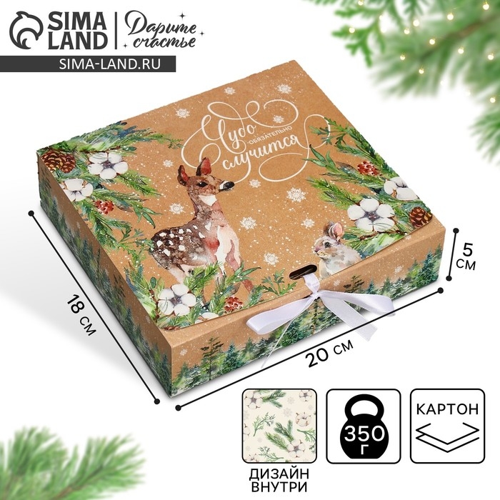 Коробка подарочная новогодняя складная двухсторонняя «Чудо обязательно случится», 20 х 18 х 5 см, Новый год