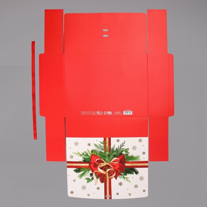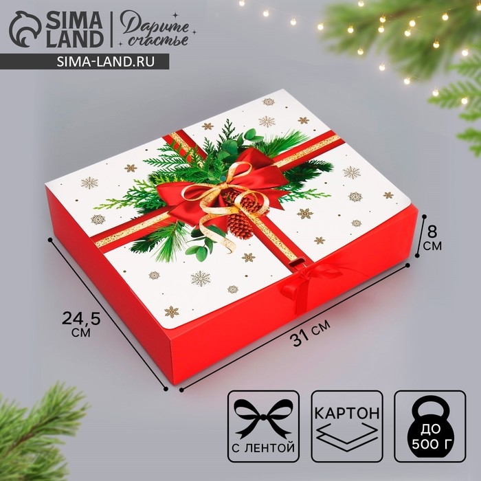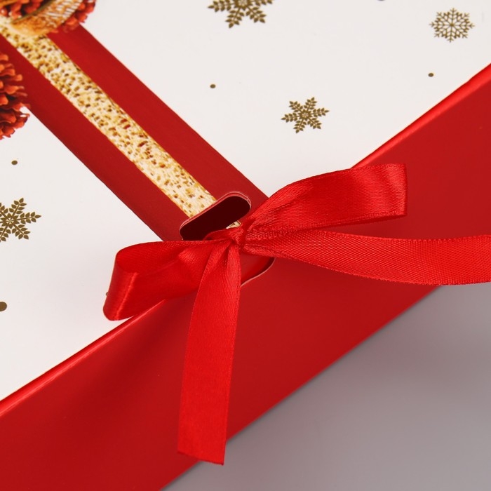 Коробка подарочная новогодняя складная «Красный бант, тиснение », 31 х 24,5 х 8 см, Новый год