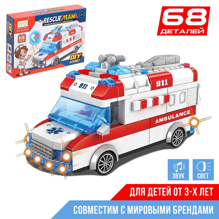 Конструктор «Скорая помощь», свет, звук, инерция, 68 деталей