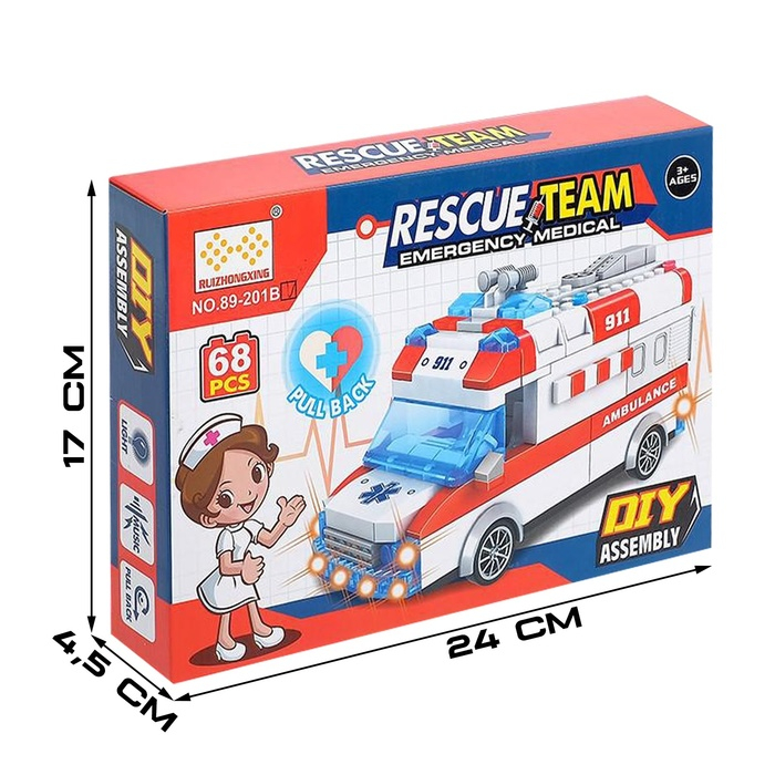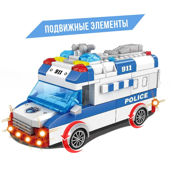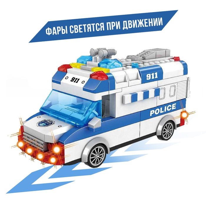 Конструктор блочный инерционный «Полицейский фургон», свет, звук, 68 деталей