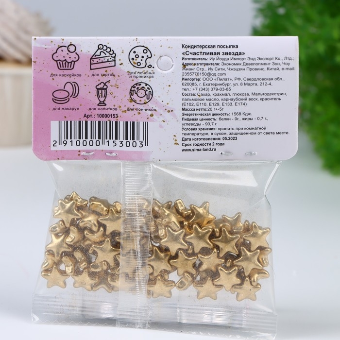 Кондитерская посыпка "Счастливая звезда" - это незаменимое украшение для Вашего праздничного стола. Присыпка представлена в виде маленьких зелёных ёлочек. Даже самый простой в исполнении десерт заиграет яркими красками благодаря нашей кондитерской посыпке.
