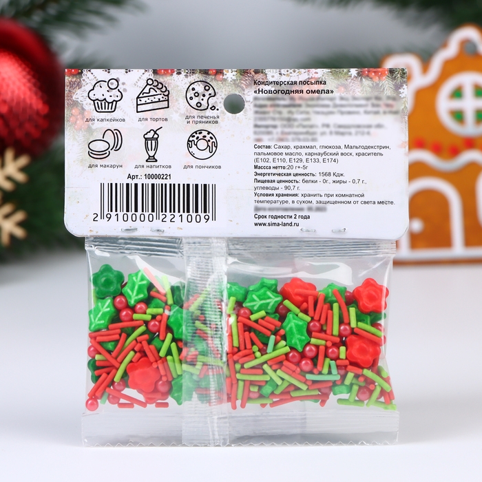 Кондитерская посыпка "Новогодняя омела" - это незаменимое украшение для Вашего праздничного стола. Даже самый простой в исполнении десерт заиграет яркими красками благодаря нашей кондитерской посыпке.