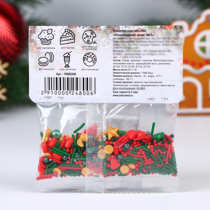 Кондитерская посыпка "Новогодний микс №3" - это незаменимое украшение для Вашего праздничного стола. Даже самый простой в исполнении десерт заиграет яркими красками благодаря нашей кондитерской посыпке.