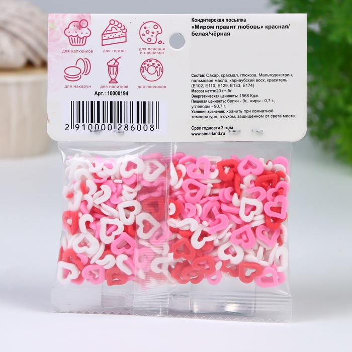 Кондитерская посыпка «Миром правит любовь», красная/белая/розовая, 20 г