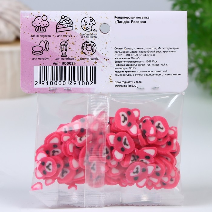 Кондитерская посыпка "Панда", розовая, 20 г