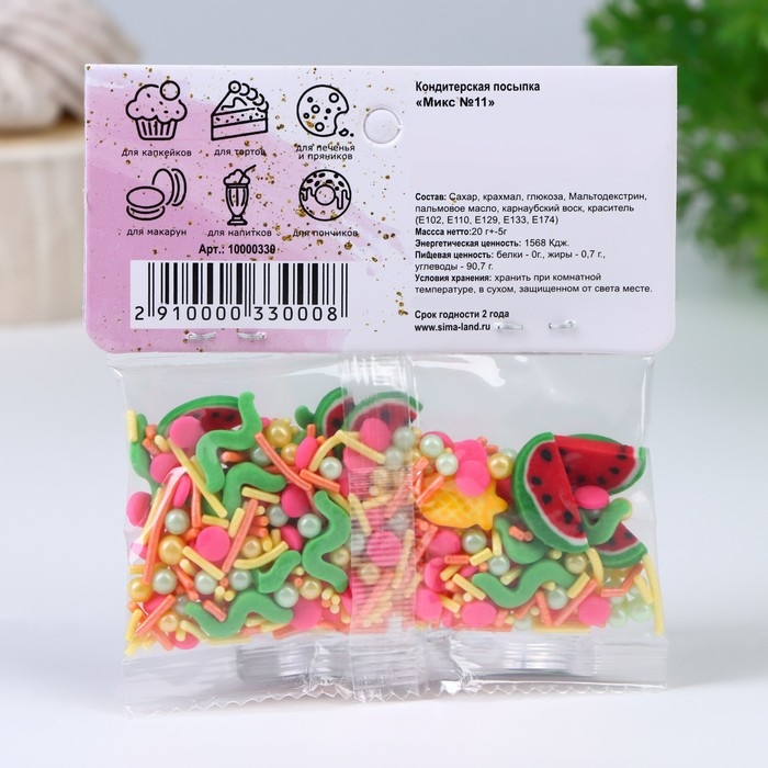 Кондитерская посыпка "Микс №11" - это незаменимое украшение для Вашего праздничного стола. Даже самый простой в исполнении десерт заиграет яркими красками благодаря нашей кондитерской посыпке.