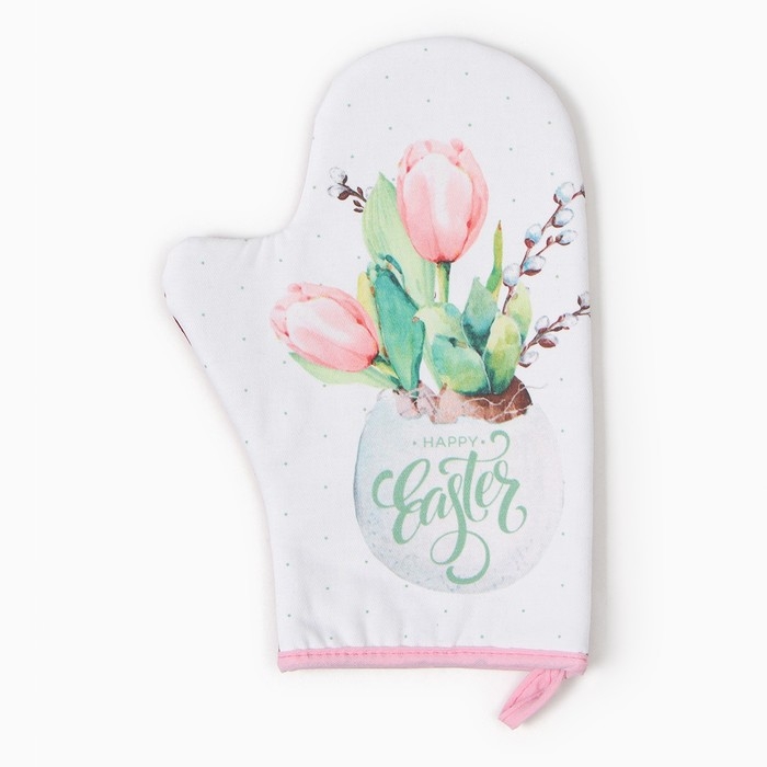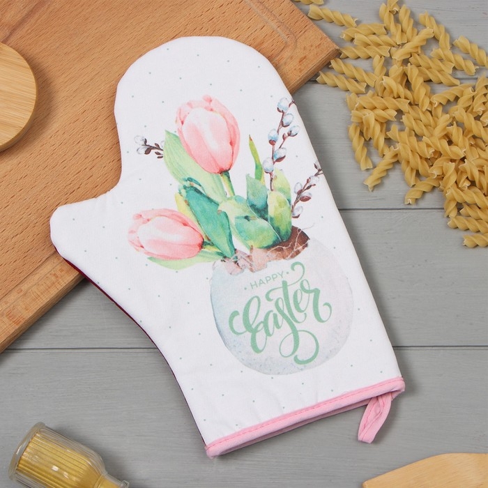 Варежка-прихватка Этель "Тюльпаны" 20х28см,саржа, 100% х/л, ватин 250г/м2