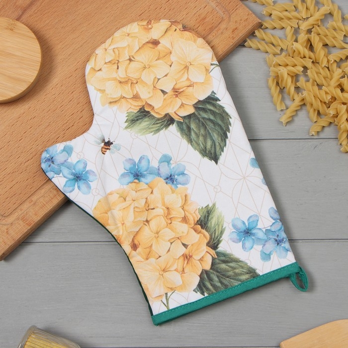 Варежка-прихватка Этель "Гортензии" 20х28см,саржа, 100% х/л, ватин 250г/м2