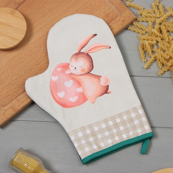 Варежка-прихватка Этель "Пасхальный кролик" 20х28см,саржа, 100% х/л, ватин 250г/м2