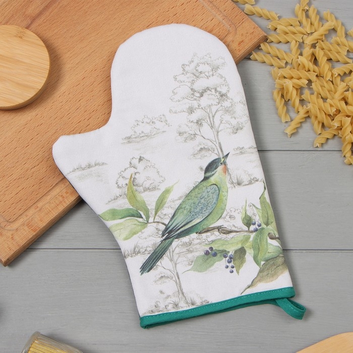 Варежка-прихватка Этель "Птицы" 20х28см,саржа, 100% х/л, ватин 250г/м2
