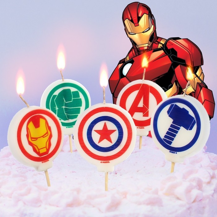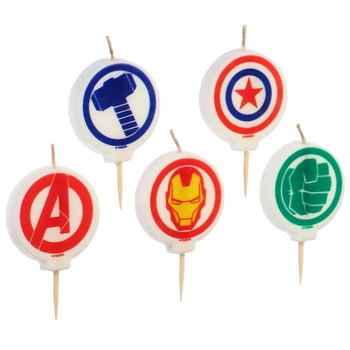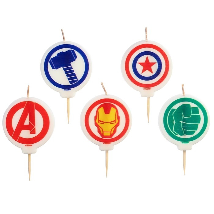 Свеча для торта "С Днем Рождения!", 5 штук, Мстители