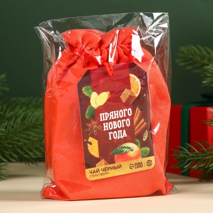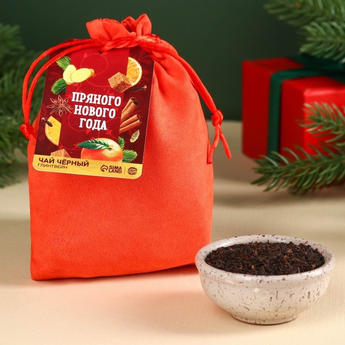 Новый год! Чай чёрный в подарочном мешочке «Пряного Нового года» с глинтвейном, 100 г.