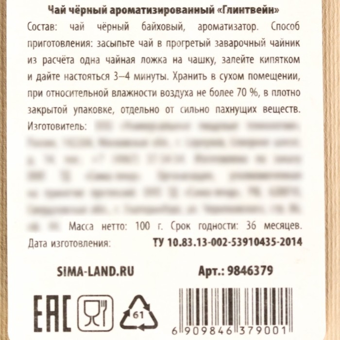 Состав: чай чёрный байховый, ароматизатор.