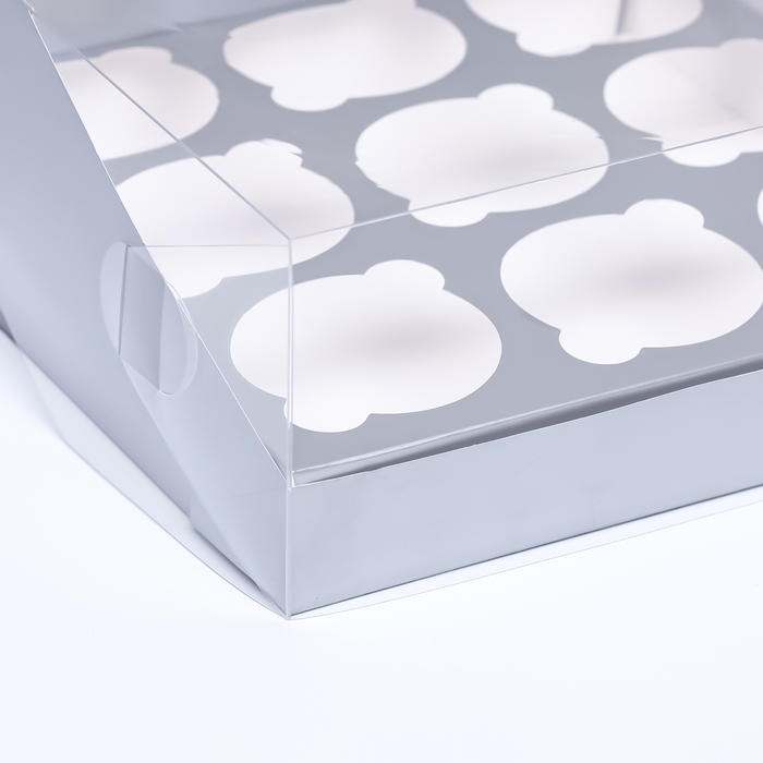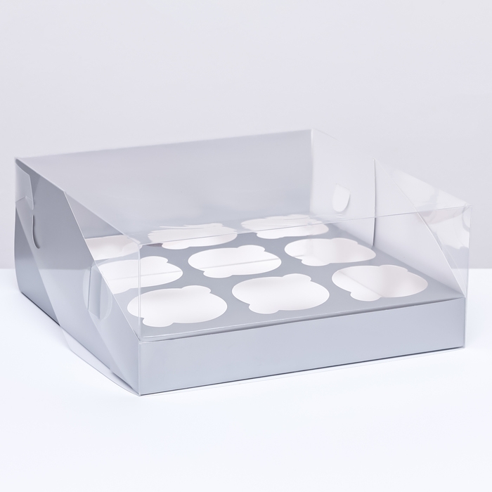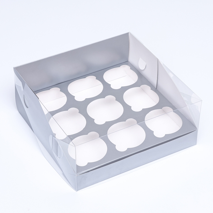Коробка для 9 капкейков 23,5 х 23,5 х 10 , Серебро
