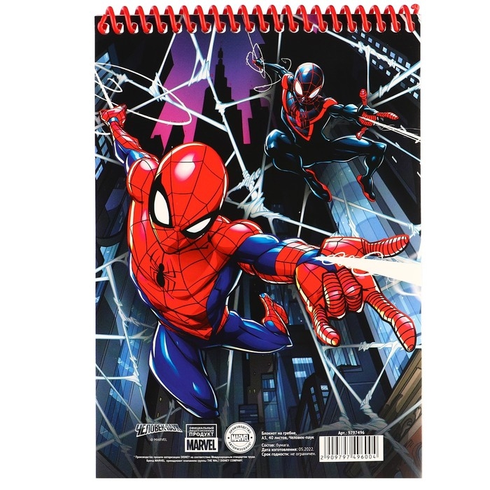 Блокнот А5, на гребне, 40 листов, Человек-паук