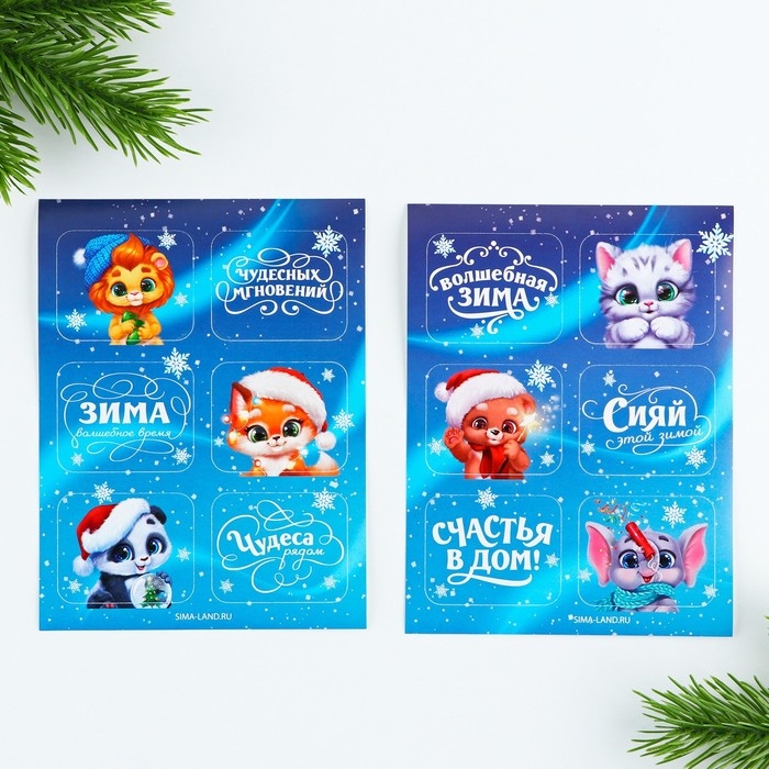 Подарочный набор новогодний блокнот-раскраска, трафареты, наклейки и восковые мелки «Лисёнок»