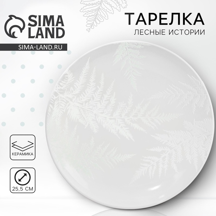 Тарелка керамическая «Папоротник», 25.5 см, цвет белый