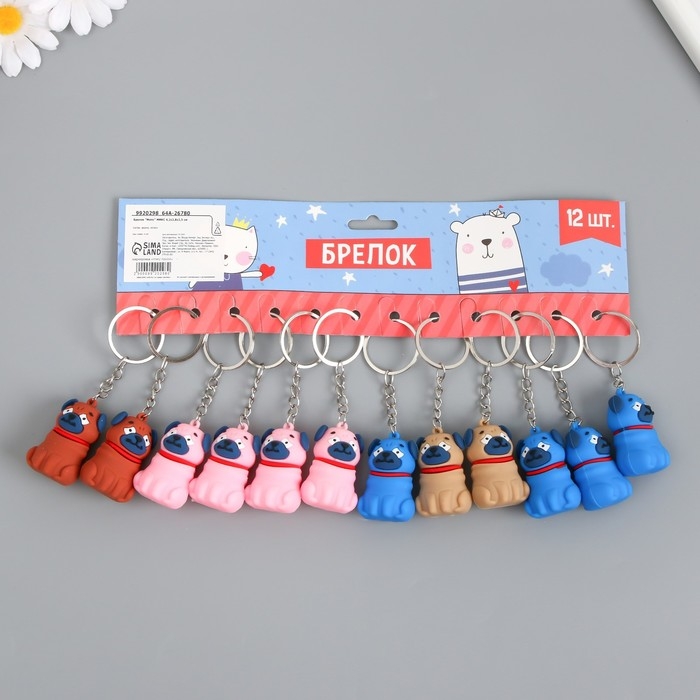 Брелок резина "Мопс" МИКС 4,2х2,8х2,5 см